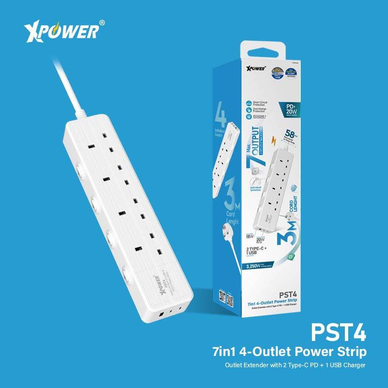 (早買限定優惠)XPower PST4 58mm 3米線長 7輸出PD 3.0獨立開關4頭拖板