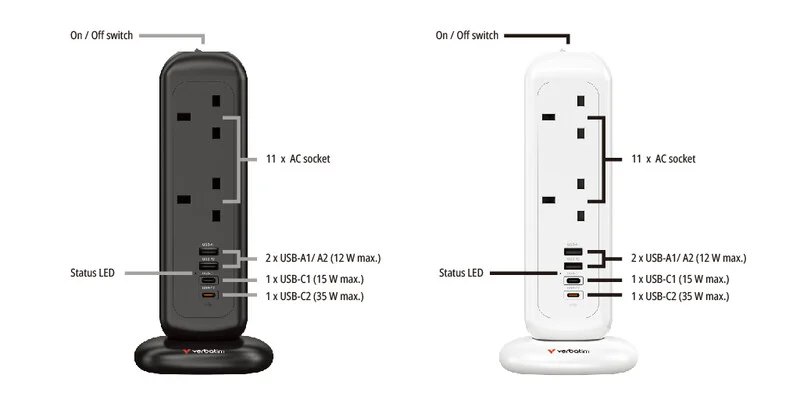 - 配備11個AC插位、2個Type C 及2個USB-A 充電口,可同時為15個設備充電