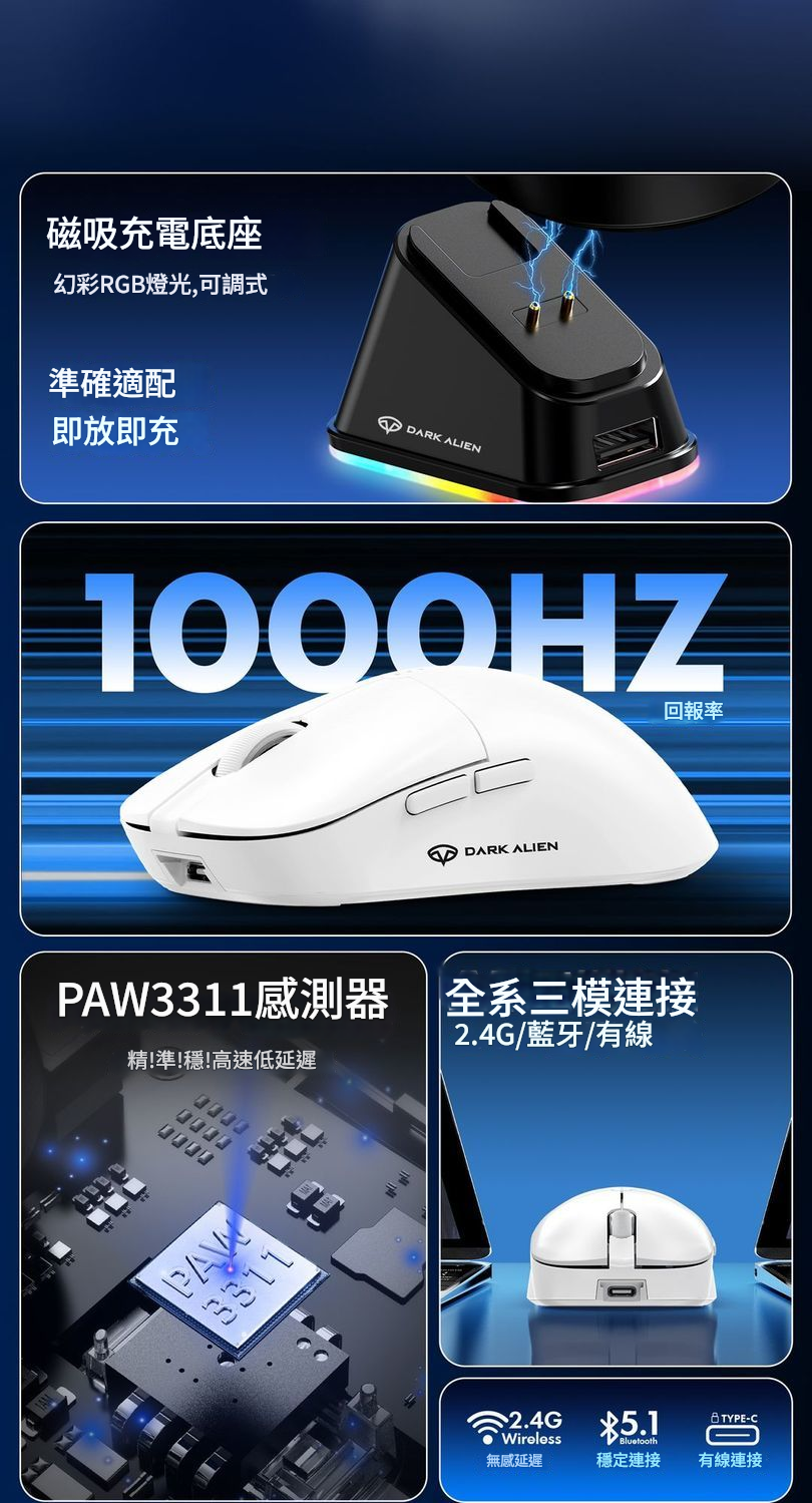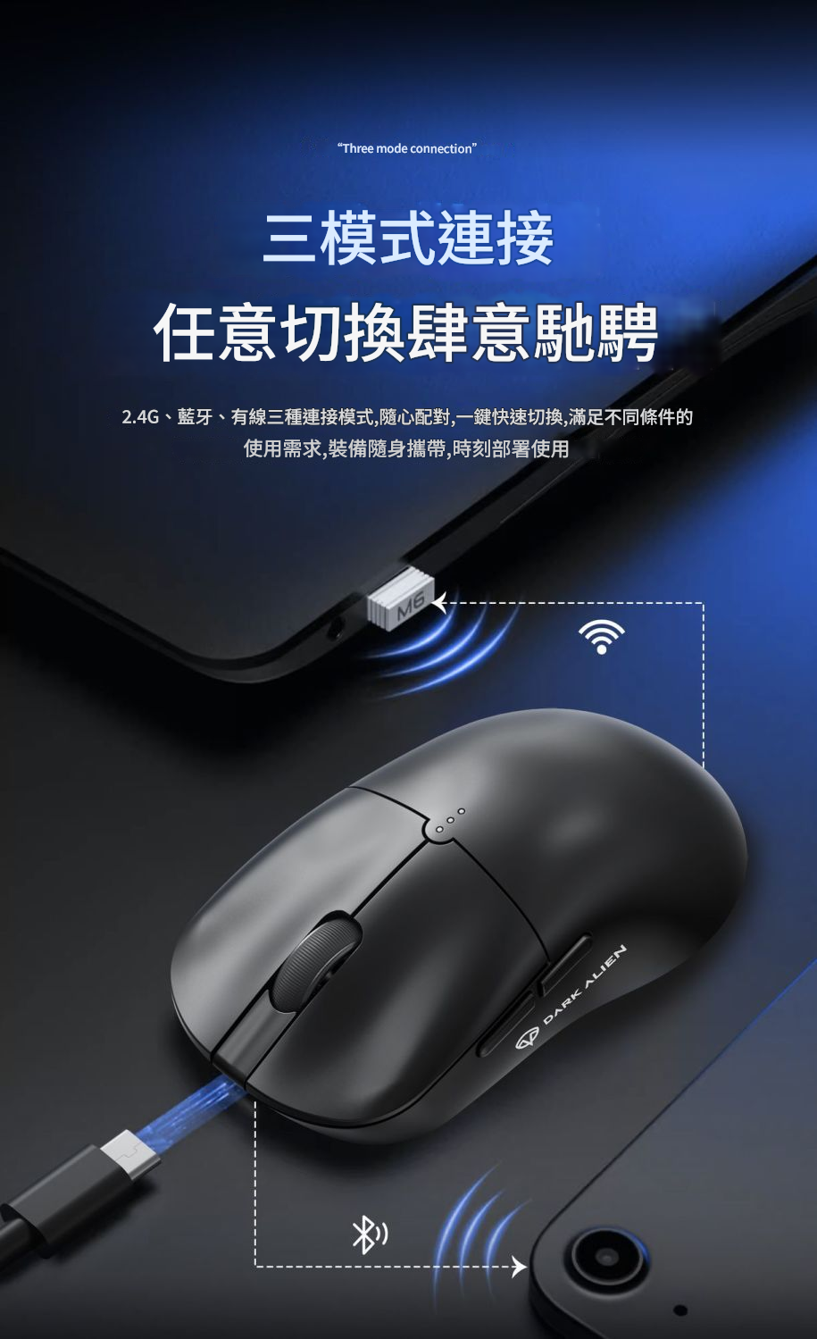 -連接方式: USB 2.4G / 藍芽 / Type-C