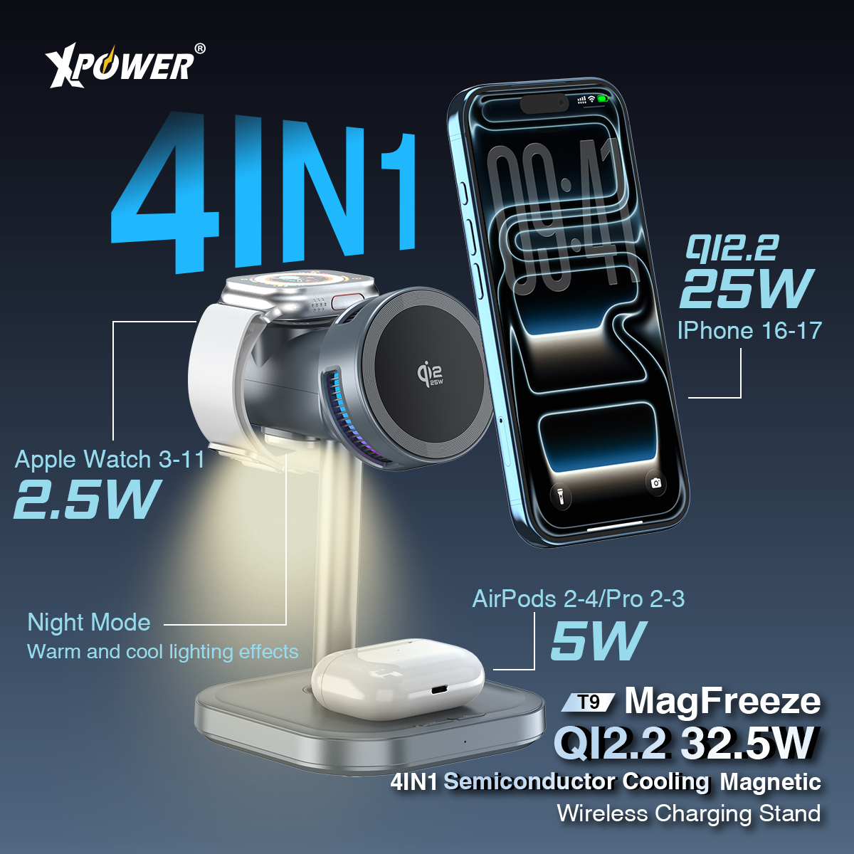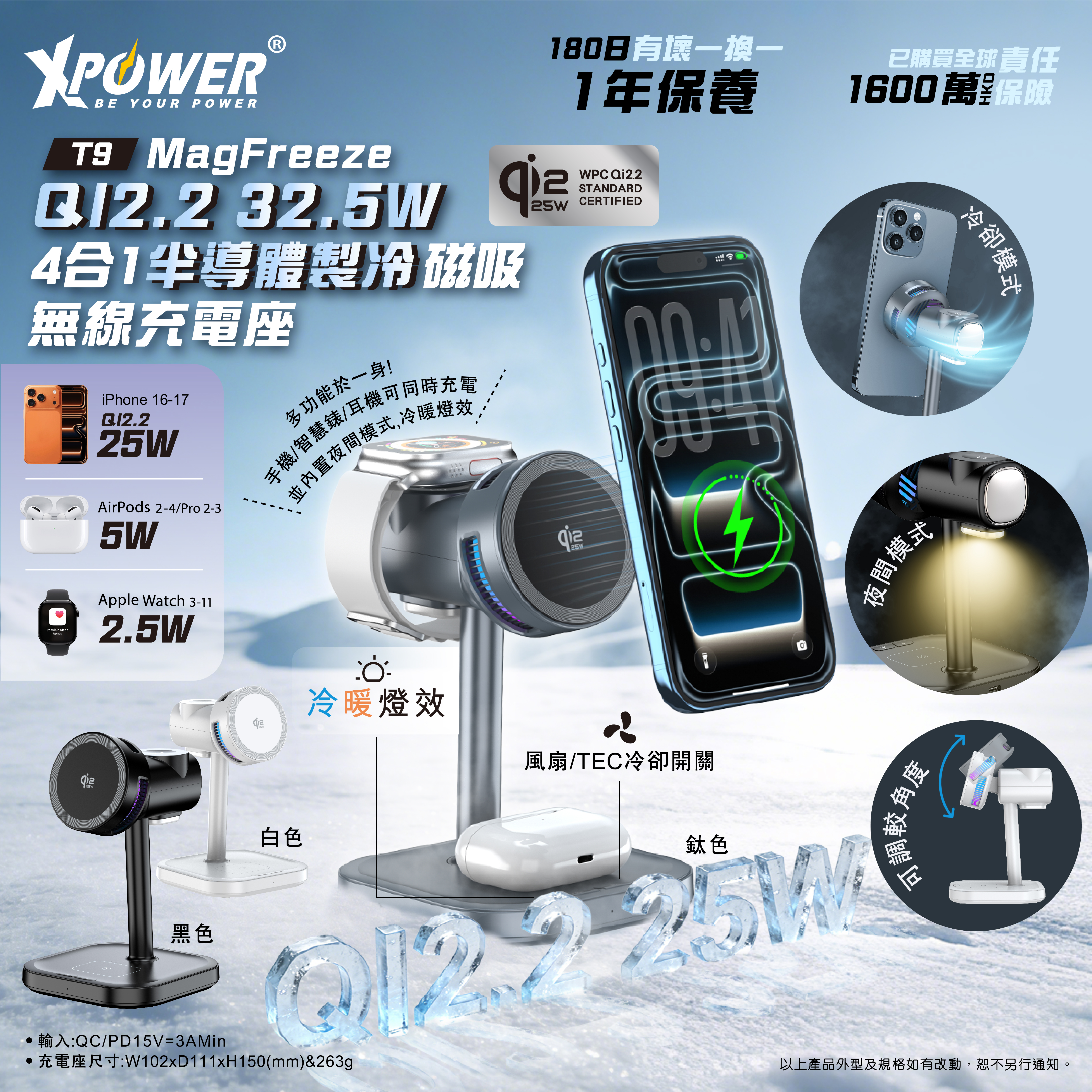 T9 MagFreeze QI2.2 32.5W 4合1半導體製冷磁吸無線充電座